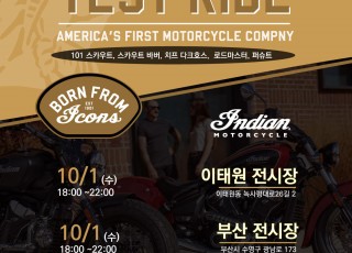 인디언 모터사이클 10월 시승 DAY 직접 라이딩 해보고 선택하세요! 서울|이태원 전시장 용산구 녹사평대로26길 2 10/01(수) 1…