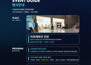 글로벌 모터사이클 시장에서 무서운 기세로 점유율을 높여가고 있는 CFMOTO가 국내 라이더들과 함께 2026년 라이딩 시즌의 화려한 막을 올린다. CFMOTO코리아는 오는 4월 5일 인천 서구 아라인천여객터미널1층에 위치한 복합문화공간 ‘아르테파인 인천’에서 시즌 오픈 이벤트인 &ls…