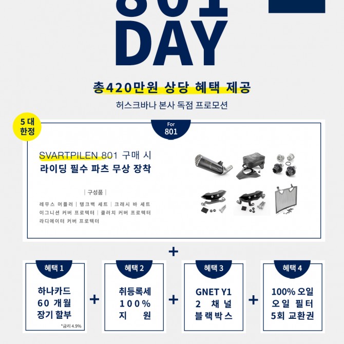 단 5대 한정, 8월 1일부터 10일까지 단 10일간 801DAY 프로모션을 진행합니다.