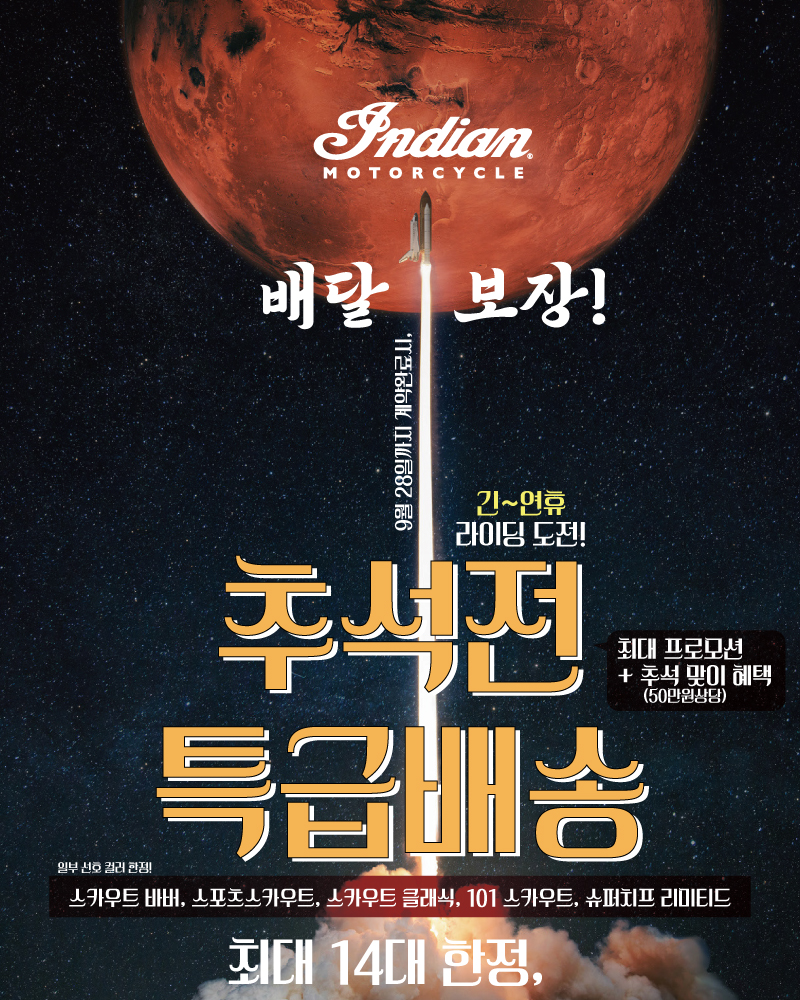 프로모션과 관련하여 자세한 사항은 인디언 모터사이클 코리아로 문의바랍니다.