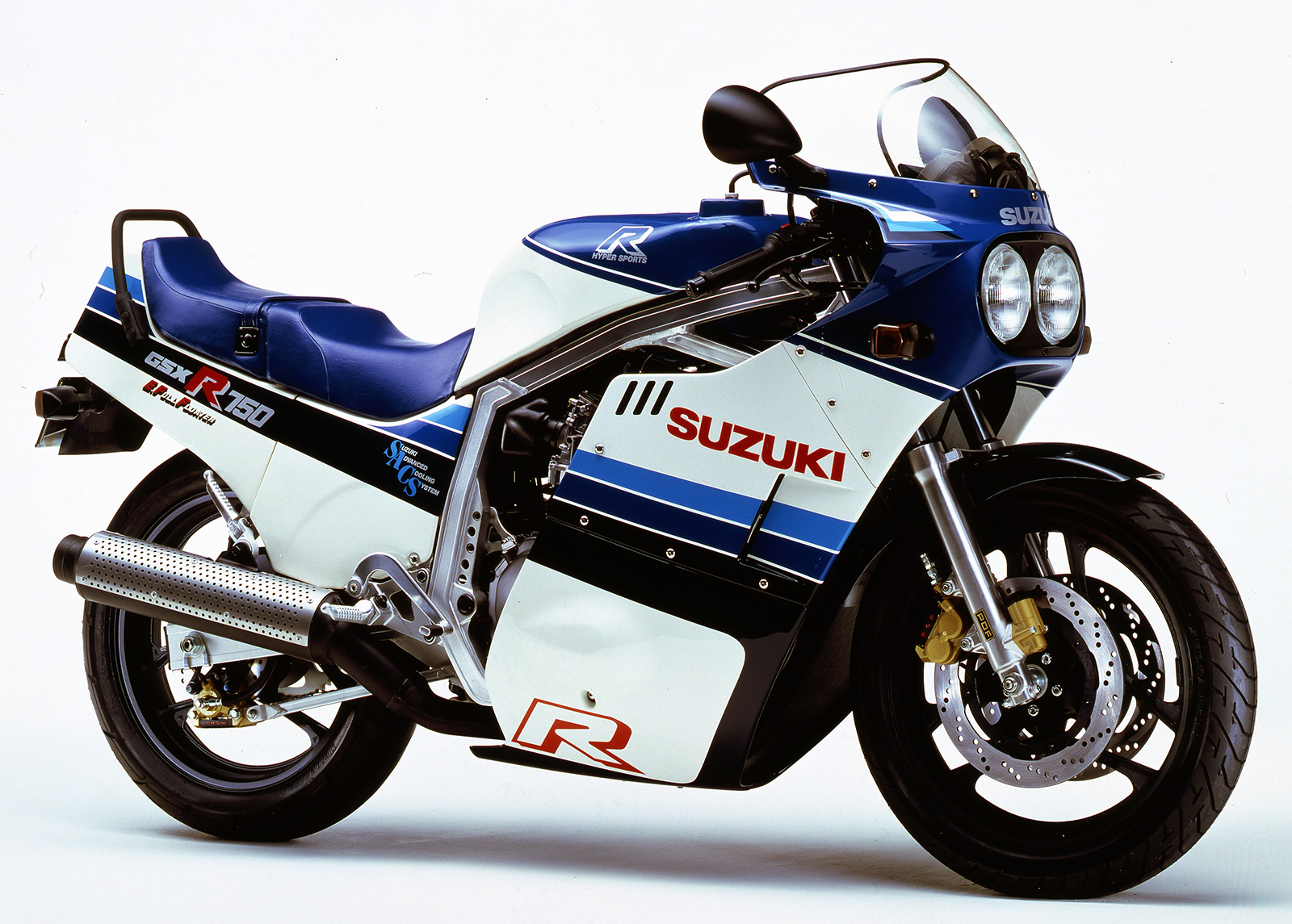 △1985년 GSX-R750은 179kg의 전례 없는 초경량 차체와 강력한 유랭 엔진으로 등장해 시장에 큰 충격을 주었다. 출시 첫해 르망 24시 내구 레이스에서 1, 2위를 휩쓰는 기염을 토하며, 상위 10위권 중 절반을 차지하는 등 전설의 시작을 알렸다. 특히 고성능에도 불구하고 일반 라이더도 비교적 쉽게 다룰 수 있어서 큰 호응을 얻었다.
