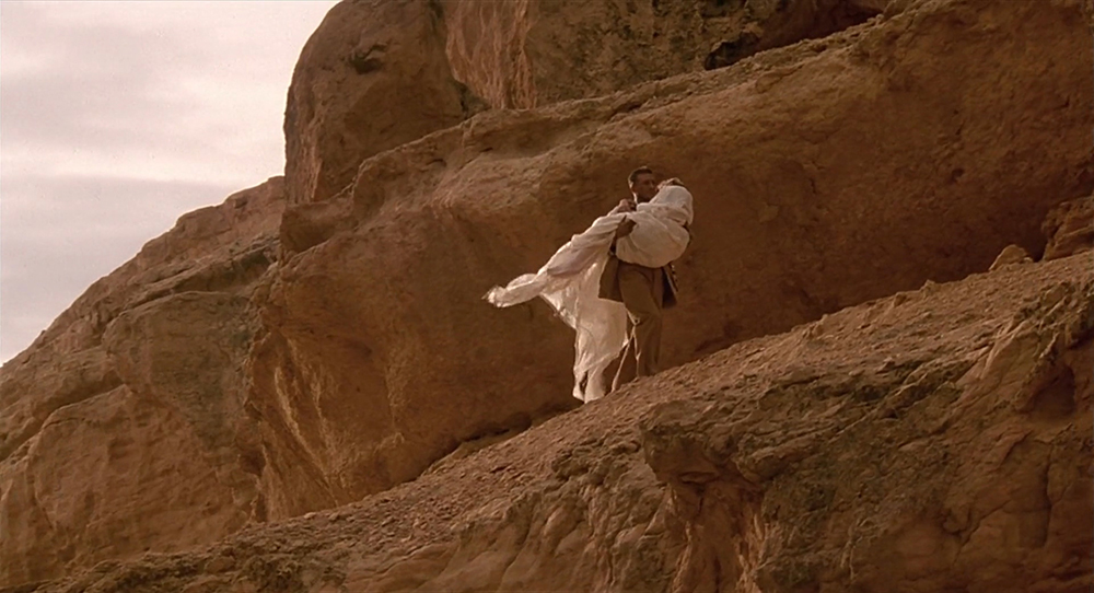 사막의 광활함 속에서 캐서린과 알머시는 서로의 고독을 읽는다. 그들의 사랑은 치명적이었고, 모든 경계를 넘어선 열정이었다. 그러나 그 사랑은 곧 파국을 향한다. 남편 제프리는 아내의 불륜을 눈치채고 절망 끝에 비행기를 몰고 알머시와 캐서린이 있는 캠프로 돌진해 자폭을 시도한다. 제프리는 즉사하고, 캐서린은 살아남지만 사막의 동굴에 고립된다.