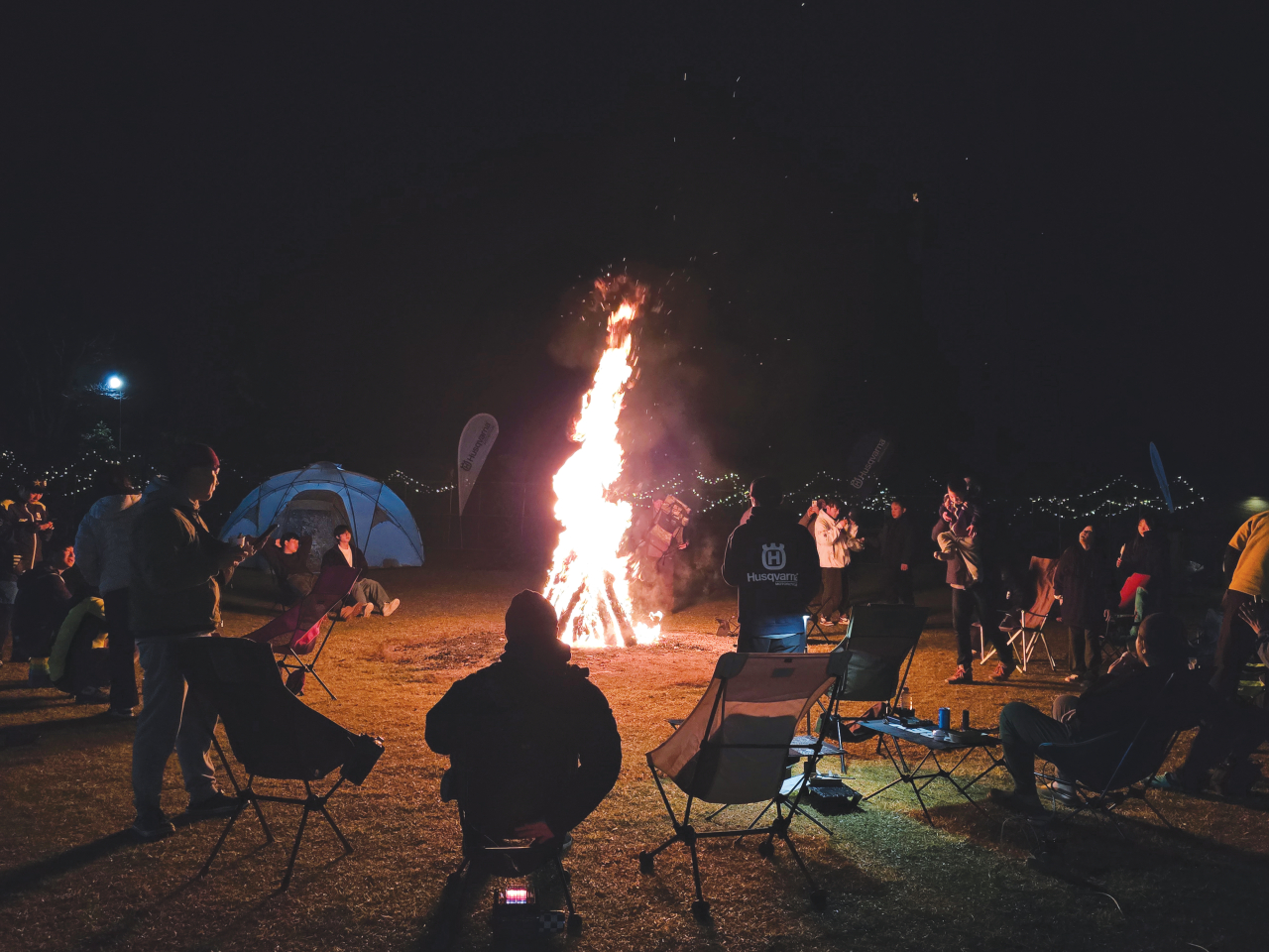 럭키드로우의 열기가 가라앉은 밤, 라이더들은 캠프파이어를 중심으로 둘러앉았다. 타오르는 불꽃 아래, 서로의 라이딩 경험을 나누고 담소를 즐기는 ‘모토캠핑’의 진정한 낭만이 깊어가는 가을밤을 따뜻하게 물들였다.