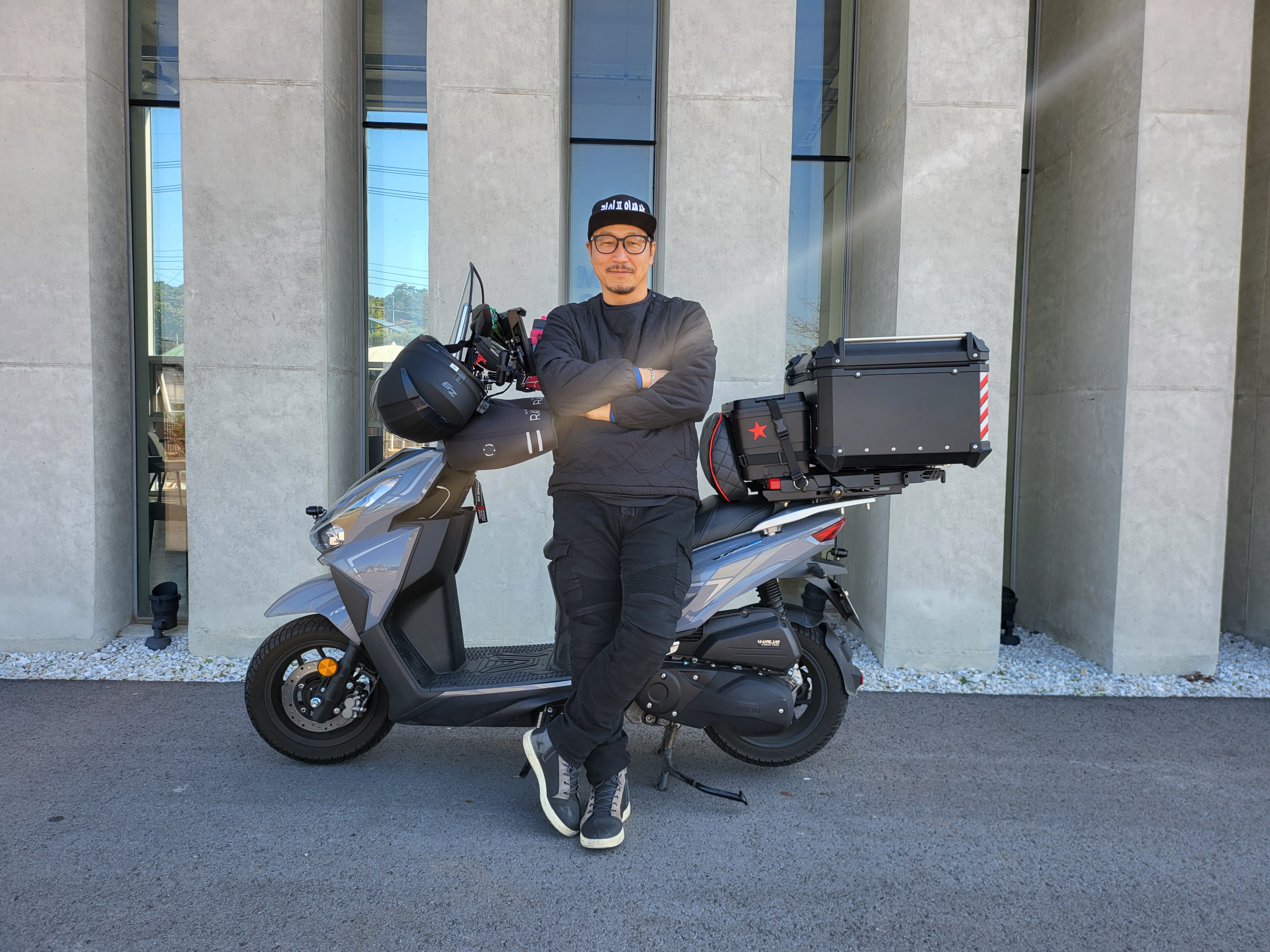 그때 그가 ‘바이크 화타’(그가 주치의처럼 신뢰하는 가와사키 천안점 사장)로 부르는 김청래 대표가 한솜모터스 VRS125를 추천했다. “슈퍼 커브만큼 가벼운데, 4밸브 엔진이라 장비를 싣고도 출력이 답답하지 않았습니다. 스로틀을 감을 때 엔진 필링도 좋고요”