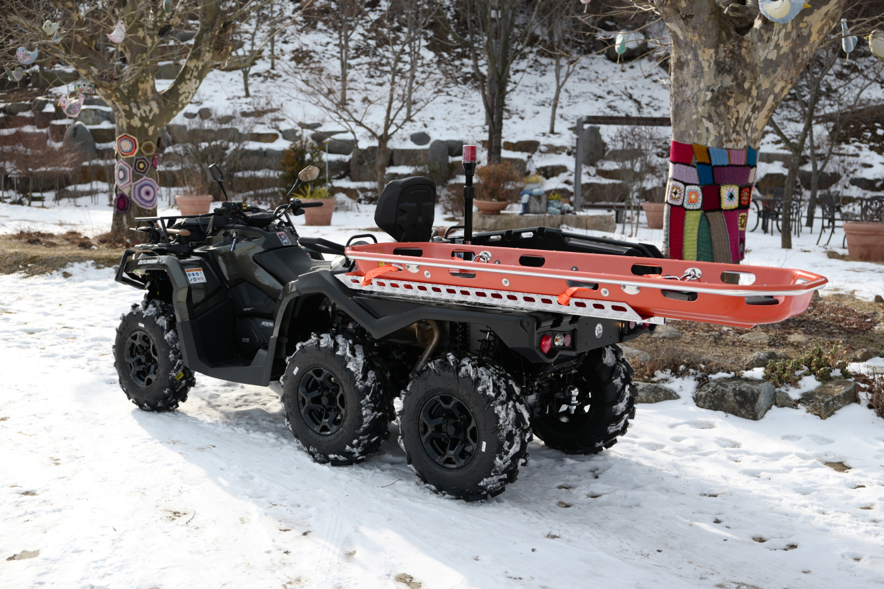 캔암 아웃랜더 6×6 플랫폼은 Pro-Mount 블레이드(제설 플로우), 유압 리프트 키트, 확장 리어 랙, 대용량 연료통, 냉·난방 박스, 방수 공구함 등 다양한 작업용 액세서리를 즉시 호환한다. 이에 따라 운반, 견인, 시설 유지, 제설까지 한 대로 운영할 수 있는 확장성이 확보된다.
