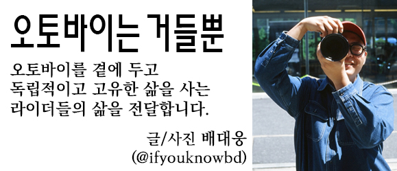 오토바이는 거친 엔진 소리를 내지만, 그 위에 앉은 사람의 삶은 저마다 다른 리듬으로 흐릅니다. 이 코너는 바이크의 제원보다 라이더의 인생에 주목합니다. 바이크는 그저 그들의 멋진 삶을 완성하는 소품일 뿐이니까요.