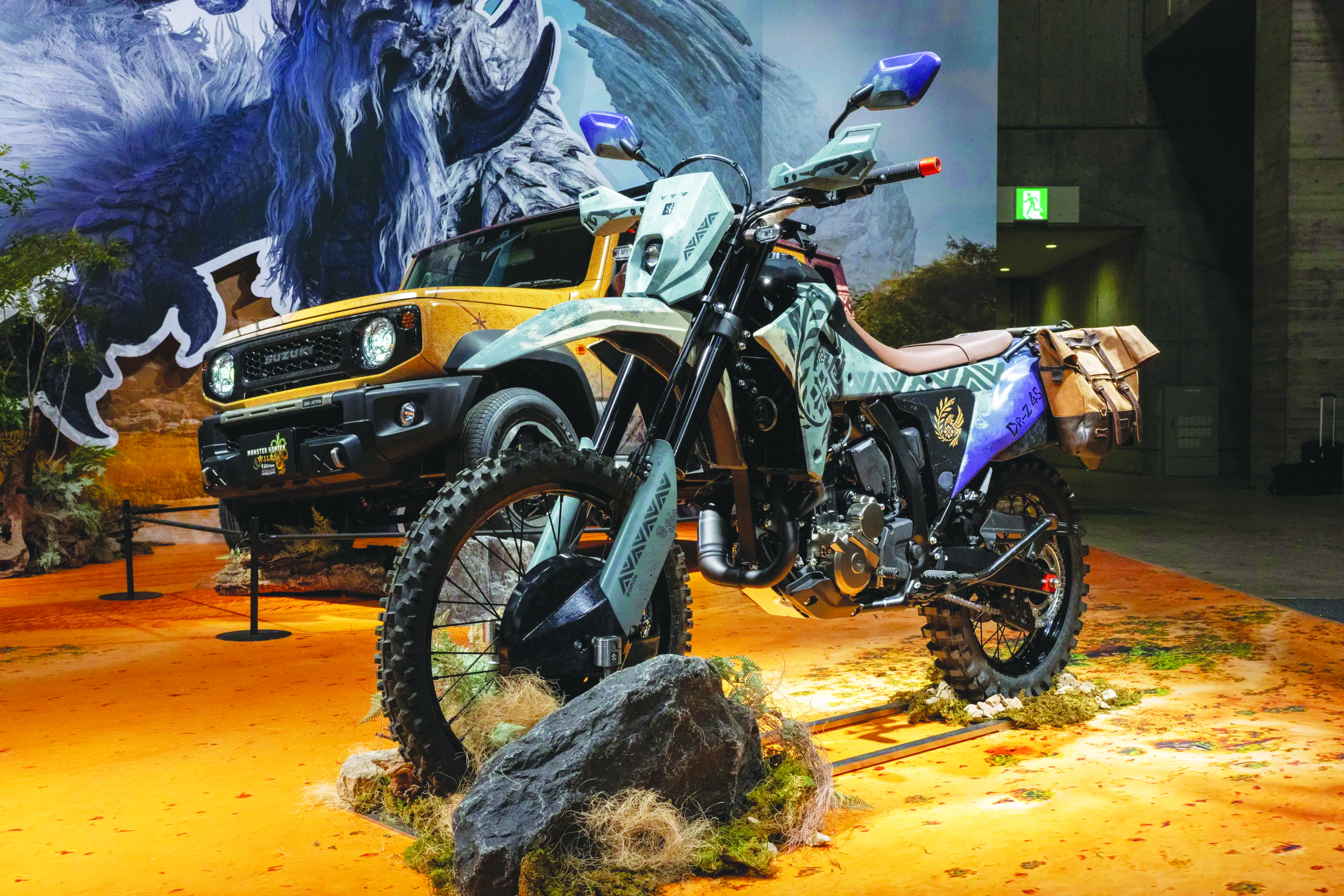 스즈키는 게임 속 세계관을 완벽하게 이식한 ‘짐니 노마드 몬스터 헌터 와일드 에디션’과 ‘DR-Z4S 몬스터 헌터 와일드 에디션’을 전면에 내세웠다. 두 모델은 단순한 랩핑을 넘어, 게임 속에 등장하는 이동 수단이자 동료의 이미지를 형상화해 관람객들에게 마치 게임 속에 들어와 있는 듯한 몰입감을 선사했다.