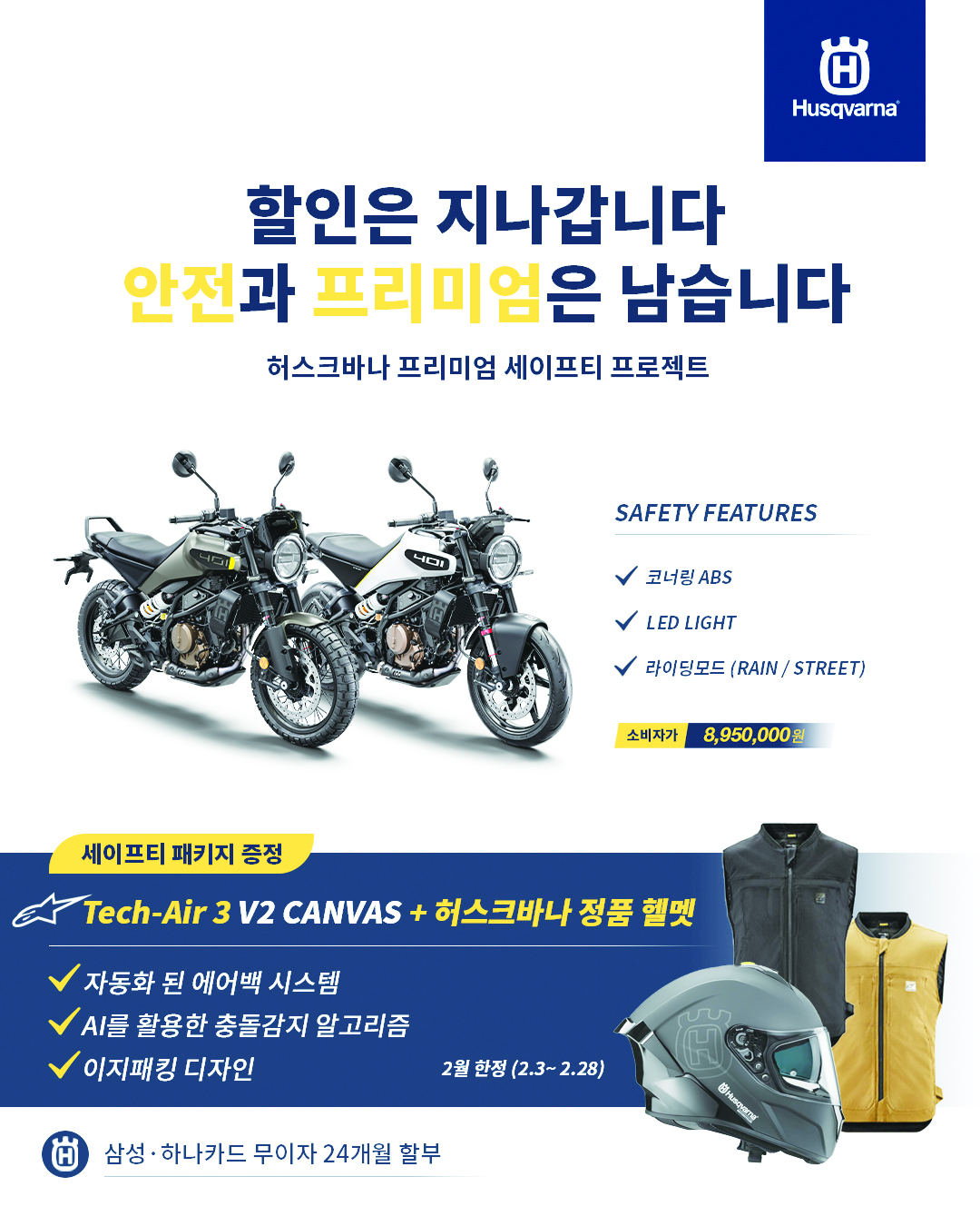 본격적인 라이딩 시즌을 앞두고 허스크바나모터사이클코리아가 단순한 가격 할인이 아닌 라이더의 생명과 직결된 ‘안전’을 선물하는 특별한 캠페인을 시작한다.