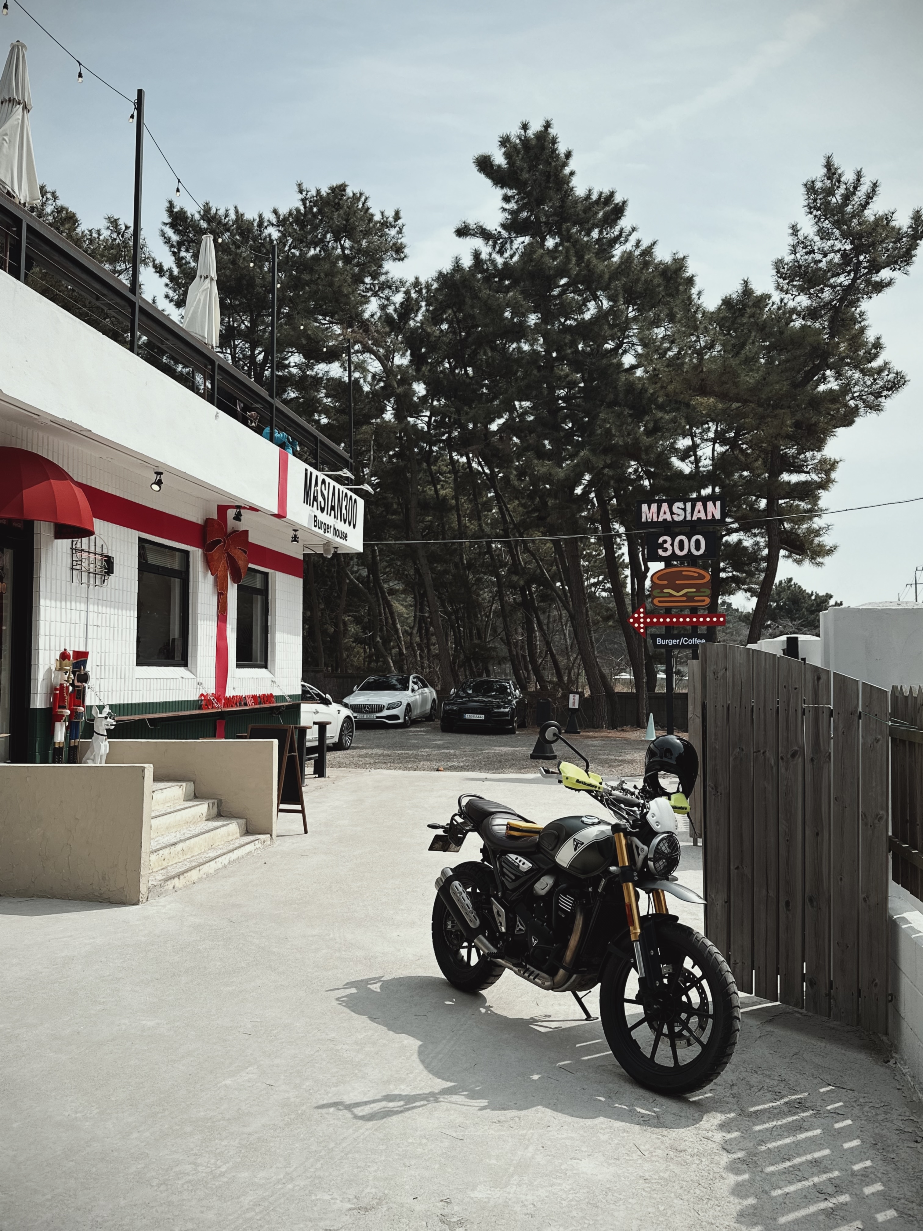 청라하늘대교를 넘어서 BMW드라이빙센터를 지나 마시안해변에 위치한 수제버거 식당이다. 라이더 전용의 식당은 아니지만 ‘Rider friendly’한 식당이라 바이크 전용주차공간이 마련되어 있어 편리하다. 규모가 크지는 않지만 수제버거도 맛있고 사장님도 친절하며 야외공간도 좋은 오션뷰 식당이라 내 취향엔 잘 맞는다. 나와 같은 취향이신지 궁금하시면 들려 보시라. 인근에 있는 유명한 대형카페와는 달리 푸근한 분위기가 매력이다.