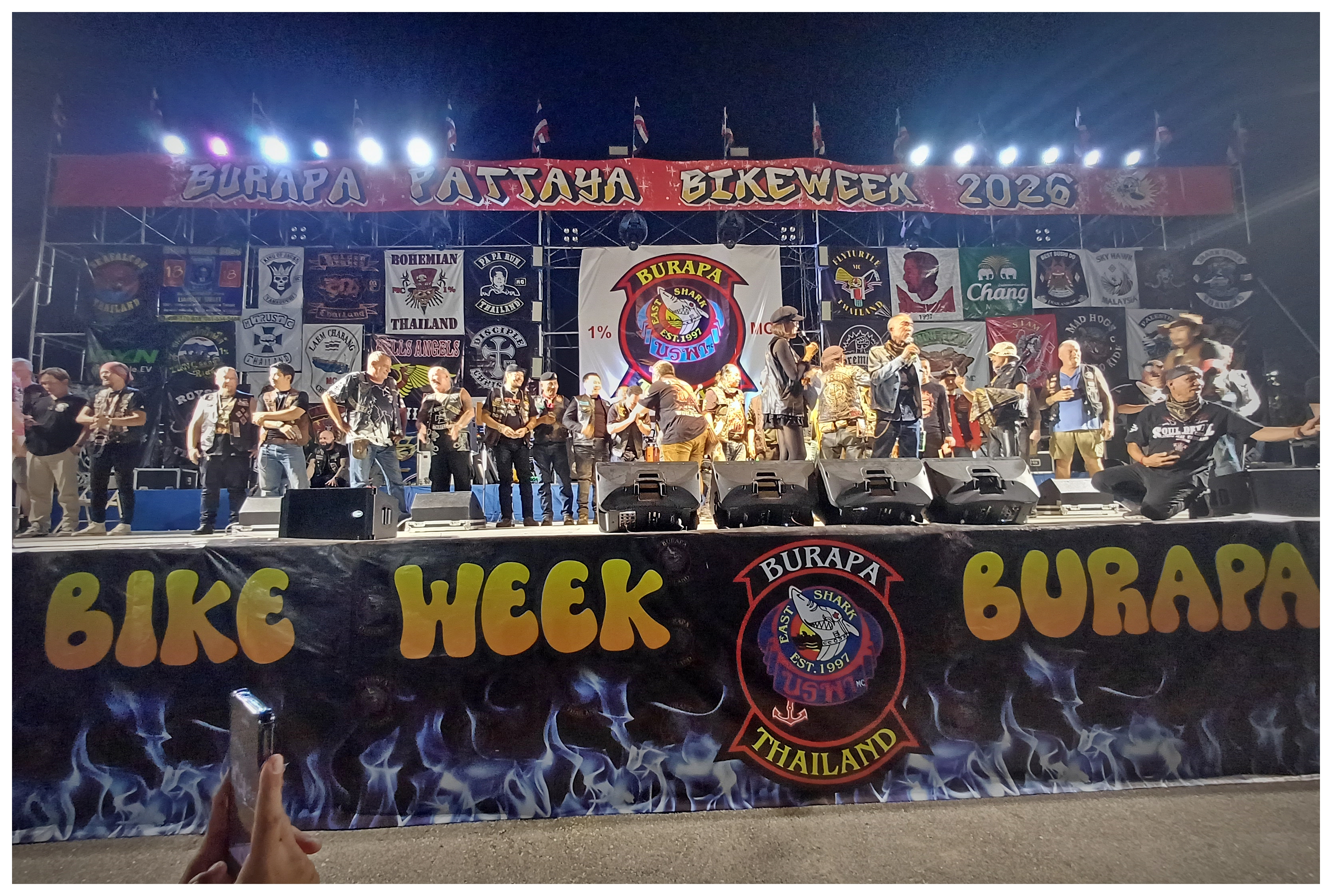 축제에 참가한 각 모터사이클 클럽 회장들의 무대 인사
