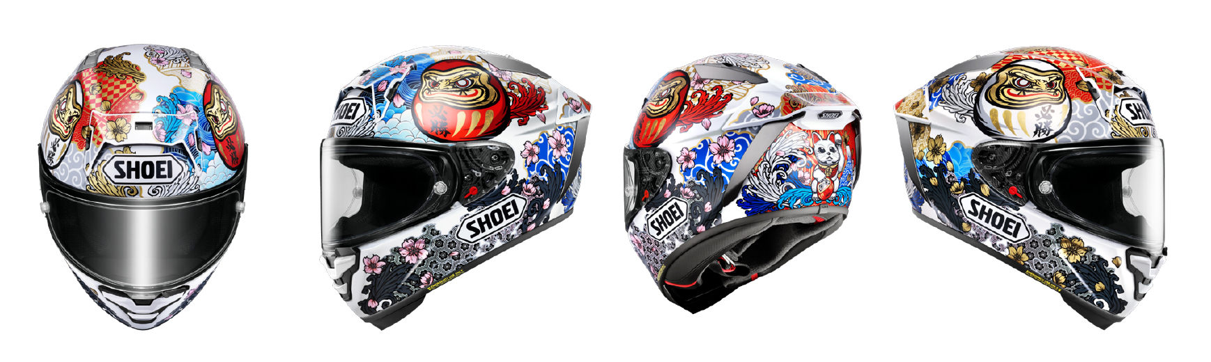 ‘마르케스 모테기5’ TC-6는 화이트와 그레이를 베이스 컬러로 사용하여 밝고 화사한 느낌을 준다. 헬멧 뒷면에는 일본의 대표적인 행운 상징인 마네키네코를 배치했으며, 좌우 측면에는 필승(必勝) 문구가 새겨진 적색과 백색의 다루마(달마)상을 배치했다.