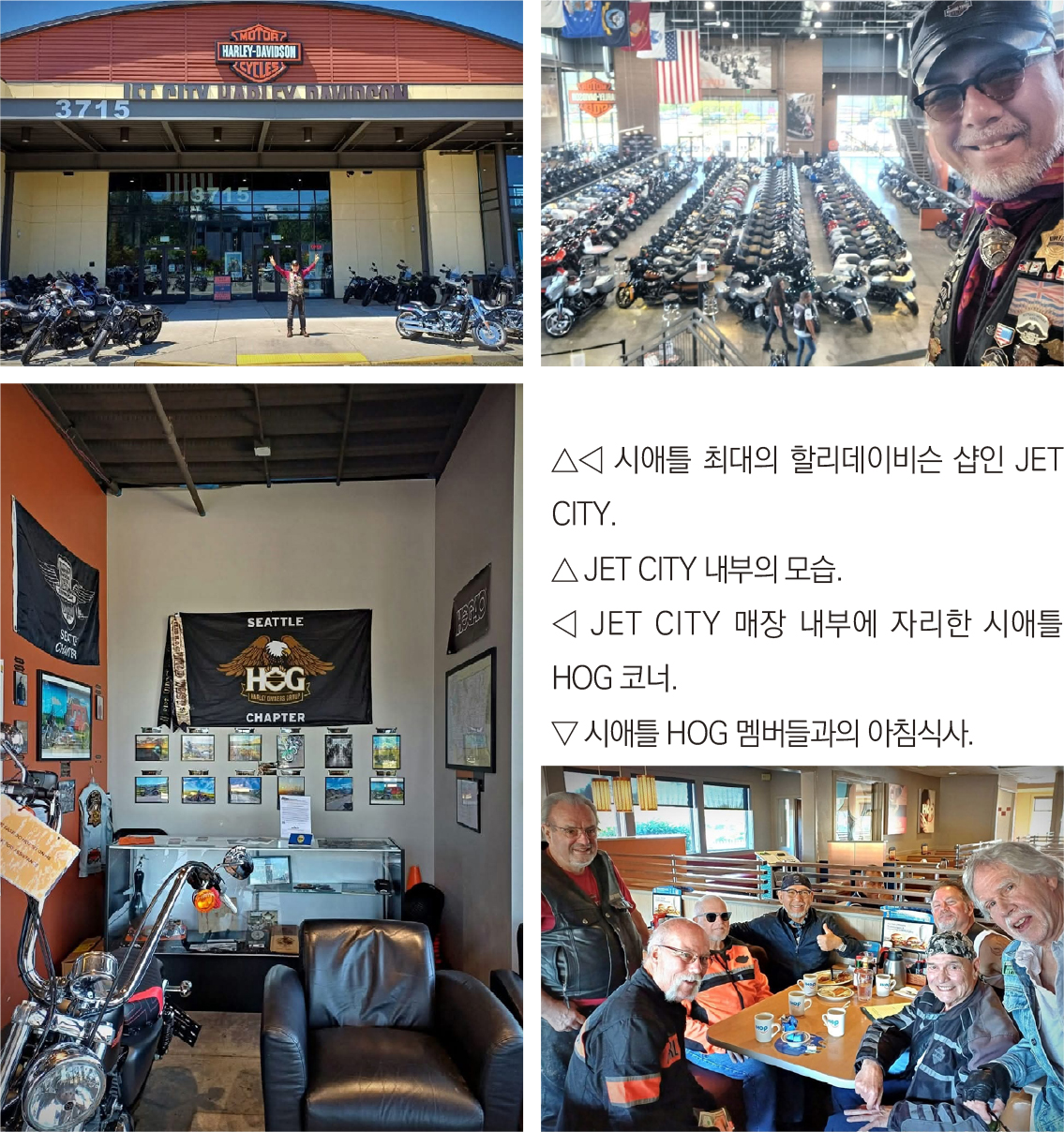 라이더로서 시애틀에서 절대 놓칠 수 없는 성지가 있다. 시애틀 남부 렌턴에 위치한 ‘제트시티 할리데이비슨’ 매장이다. 워싱턴주 최대 규모인 이곳은 축구장 크기와 맞먹는 약 1,700평의 광활한 면적에 수백 대의 할리데이비슨이 도열해 있다. 50여 명의 모터사이클 전문가들이 근무하는 거대한 할리데이비슨의 성지는 라이더들의 심박수를 최고조로 끌어올리기에 충분하다.