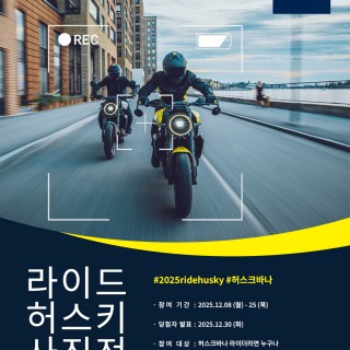 한 해 동안 허스크바나와 함께 달려온 순간들, 여러분이 직접 담아낸 2025년의 라이딩 기록을 공유해주세요. 한 해를 마무리하며 허스키 라이더들의 이야기를 모아 온라인 사진전을 개최합니다. ? 응모 기간 2025.12.08(월) ~ 2025.12.25(목) ? 당첨자 발표 2025.12.30(화) *구글폼에 작성해주신 연락처를 기반으로 …