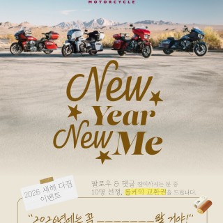 New Year, New Me – 인디언 모터사이클 2026 새해 다짐 이벤트 2026년, 여러분의 새해 목표는 무엇인가요? “2026년에는 꼭 ______ 할 거야!” 여러분의 새해 다짐을 댓글로 남겨주세요! ? 참여 방법 1️⃣ 인디언 모터사이클 코리아 공식 인스타그램 계정 팔로우 2️⃣ 이벤트 게시물에 새해 다짐 댓글 남기기 …